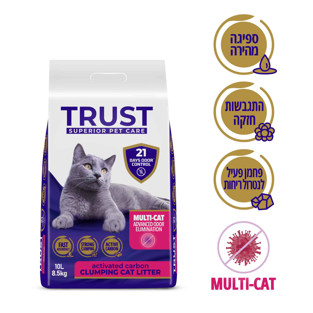 טראסט חול מתגבש בתוספת פחם פעיל – מולטי קט 10 ליטר TRUST