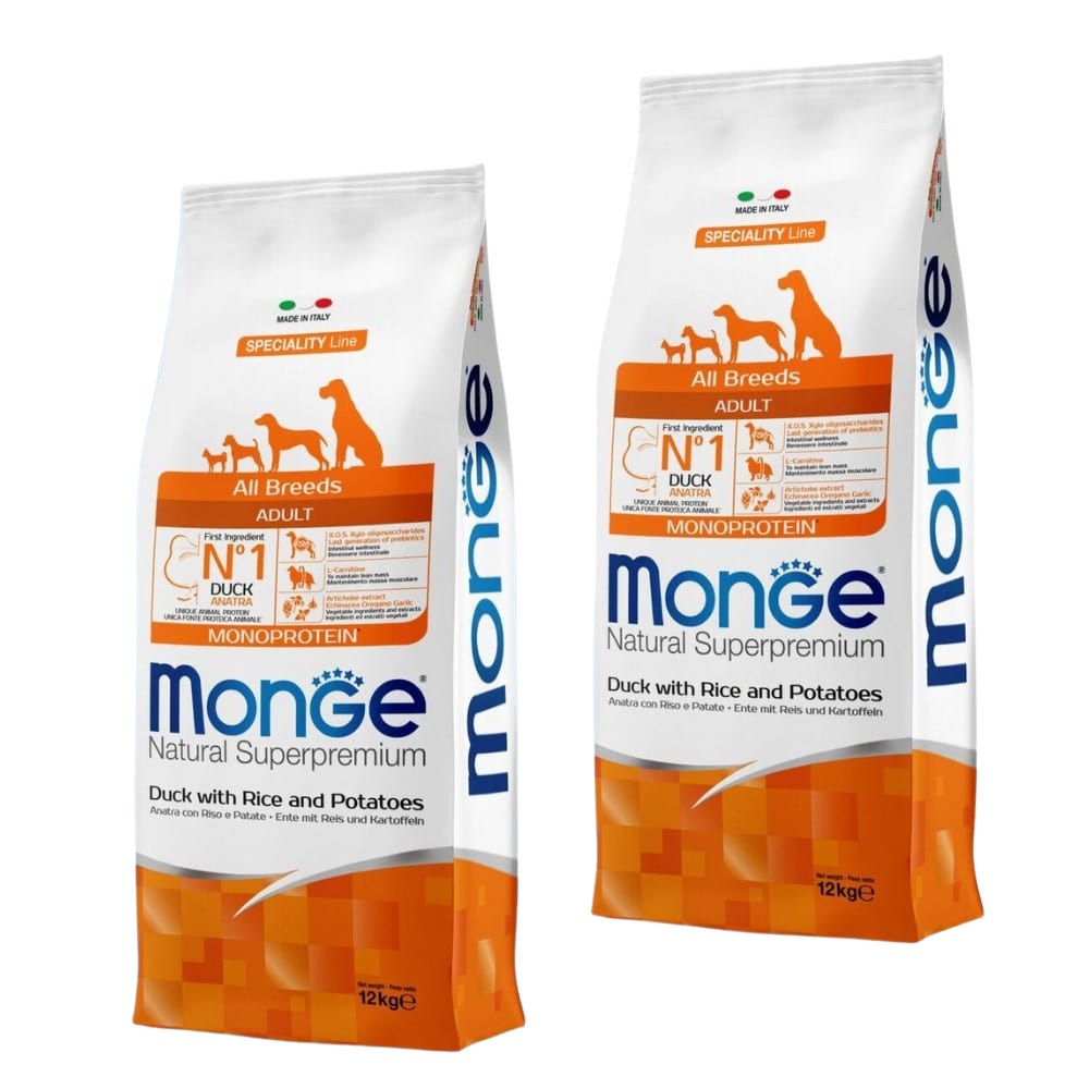 2 שקי מונג’ ברווז לכלב בוגר 12 ק”ג Monge