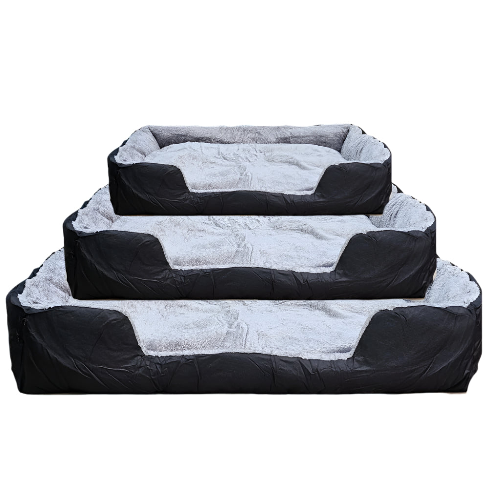 מיטה לכלב מבד שחור דוחה נוזלים ובד פנימי קטיפה אפור 3 מידות