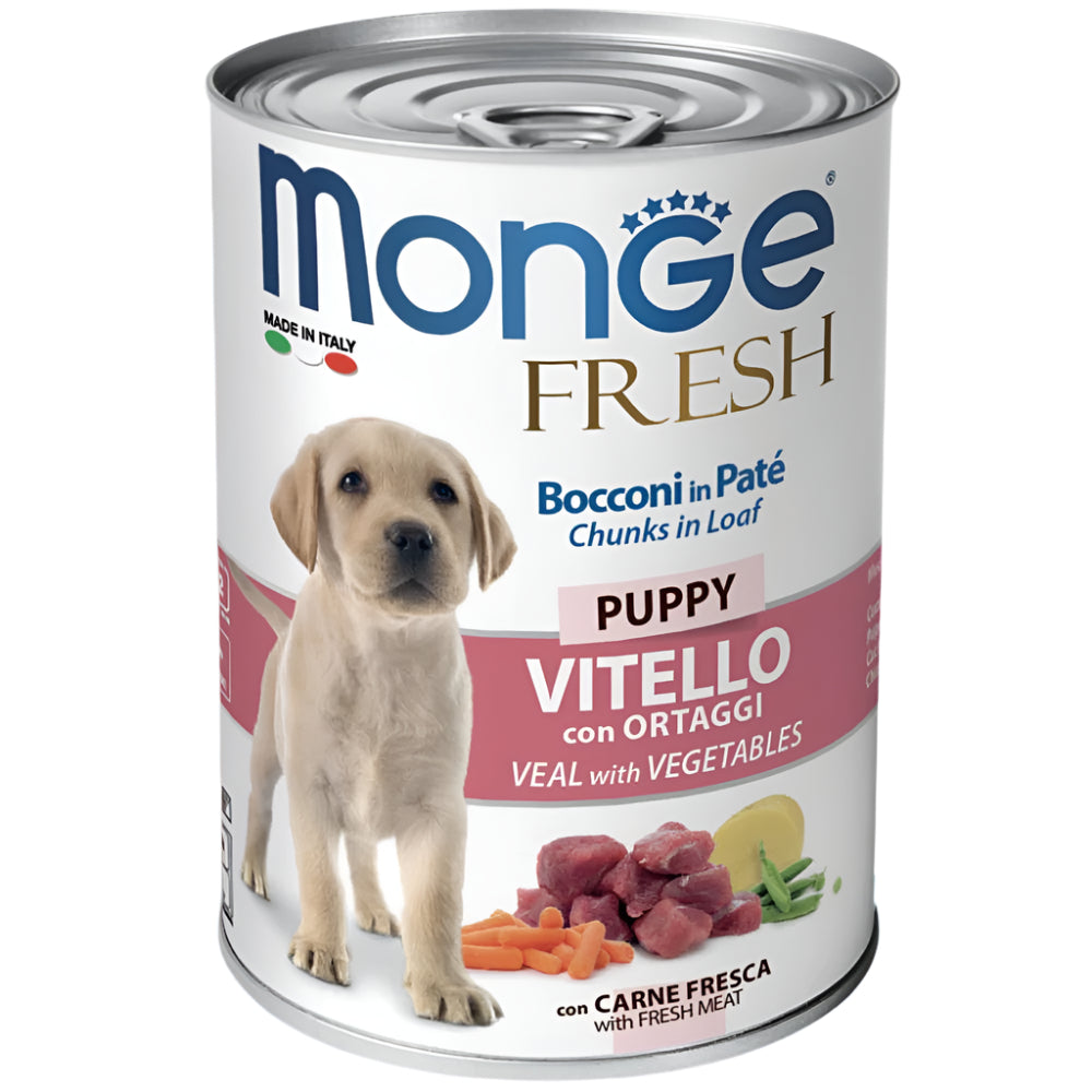 מונג' פרש שימור פטה עם נתחי בשר עגל וירקות לגורים 400 גרם