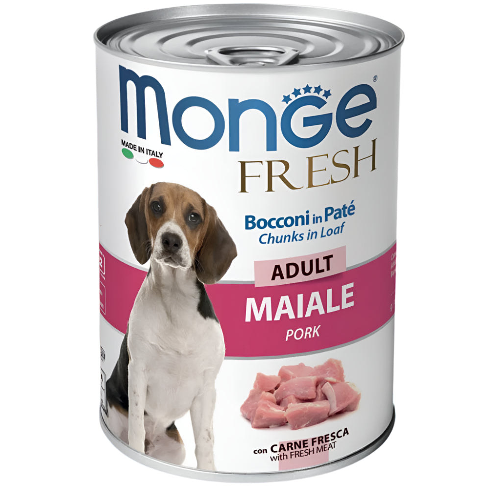 מונג' פרש שימור פטה עם נתחי בשר חזיר לכלב בוגר 400 גרם