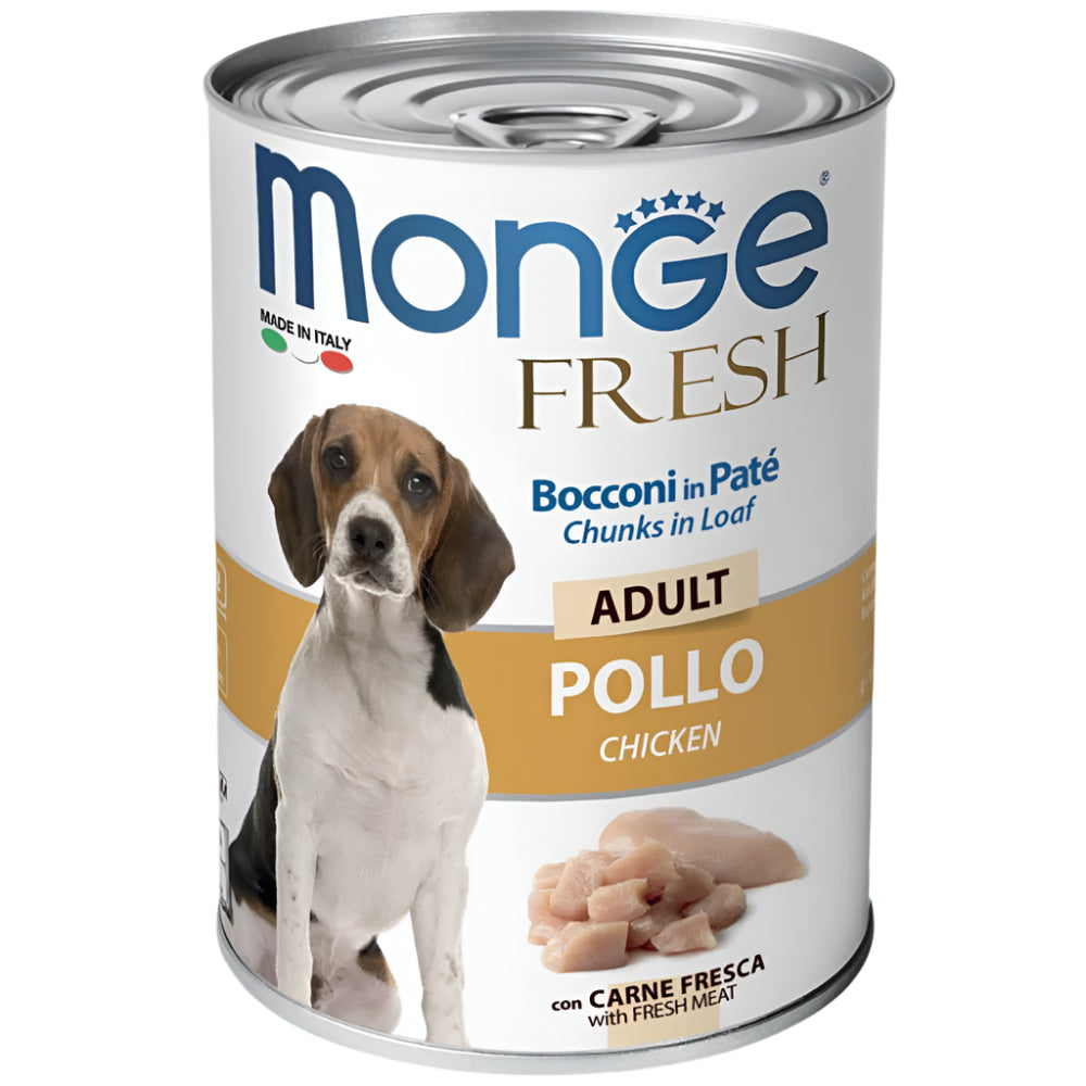 מונג' פרש שימור פטה עם נתחי בשר עוף לכלב בוגר 400 גרם